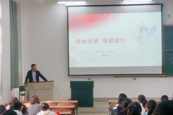 随后,学前与特殊教育学院党委书记张大卫讲授专题党课——“使命在肩,坚毅前行”领学党的二十大报告。张大卫同志从十五个方面详细讲解了党的二十大报告,并对参训人员提出了学习要求。通过张大卫同志的专题党课,让参训人员深入学习领悟了党的二十大精神,进一步提升了对党的二十大报告的理解和认识。
