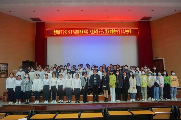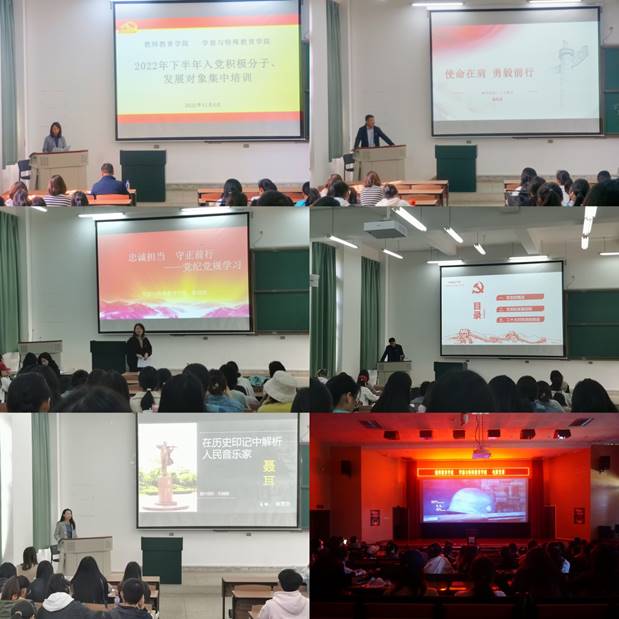 2022年11月4日—11月11日,教师教育学院党委、学前与特殊教育学院党委联合举办的入党积极分子、发展对象集中培训圆满结束。此次培训紧紧围绕党的二十大精神、党章、党纪党规、聂耳精神、爱国主义教育等多个教育培训目标以专题讲座、讨论、自学、电影党课、实践活动等方式开展了不少于三天(24学时)的集中培训。教师教育学院党委书记刘娟娟为此次培训开班做动员讲话、副书记鲁寿坤做结业典礼讲话。学前与特殊教育学院党委书记张大卫、党委副书记张晓晨分别为参训人员讲授专题党课,并邀请了马克思主义学院缪文武、云南省博物馆副研究馆员杨雯玥、省委党校党史教研部讲师徐继平做专题党课讲授。在党课培训中,参训人员对“党的二十大报告”、党纪党规、新党章、聂耳精神、中国共产党百年奋斗历程进行了专题学习,并进行分组讨论,自学了《中国共产党组织工作条例》《中国共产党普通党员高等学校基层组织工作条例》,观看了党课电影《百团大战》,开展了“高举中国特色社会主义伟大旗帜——真情告白党和祖国”实践活动。在校生党员、72名参训对象共计100余人参加了培训。
